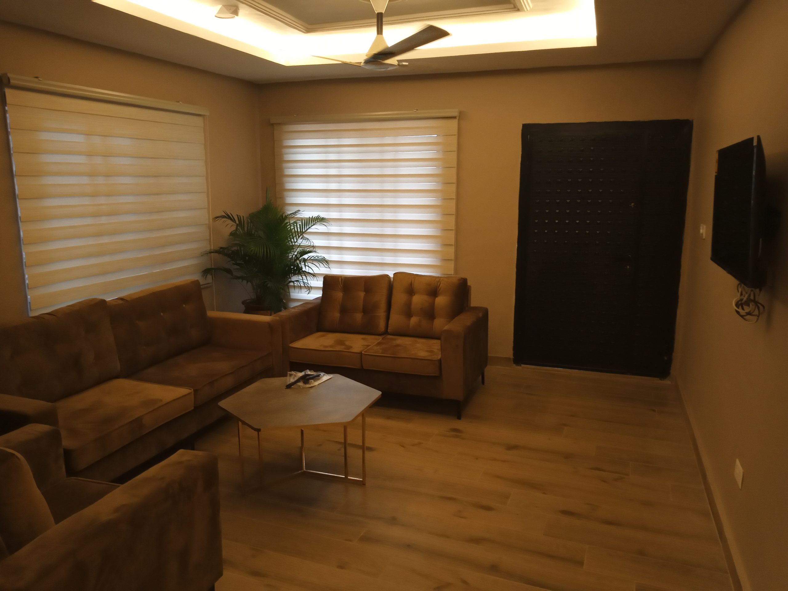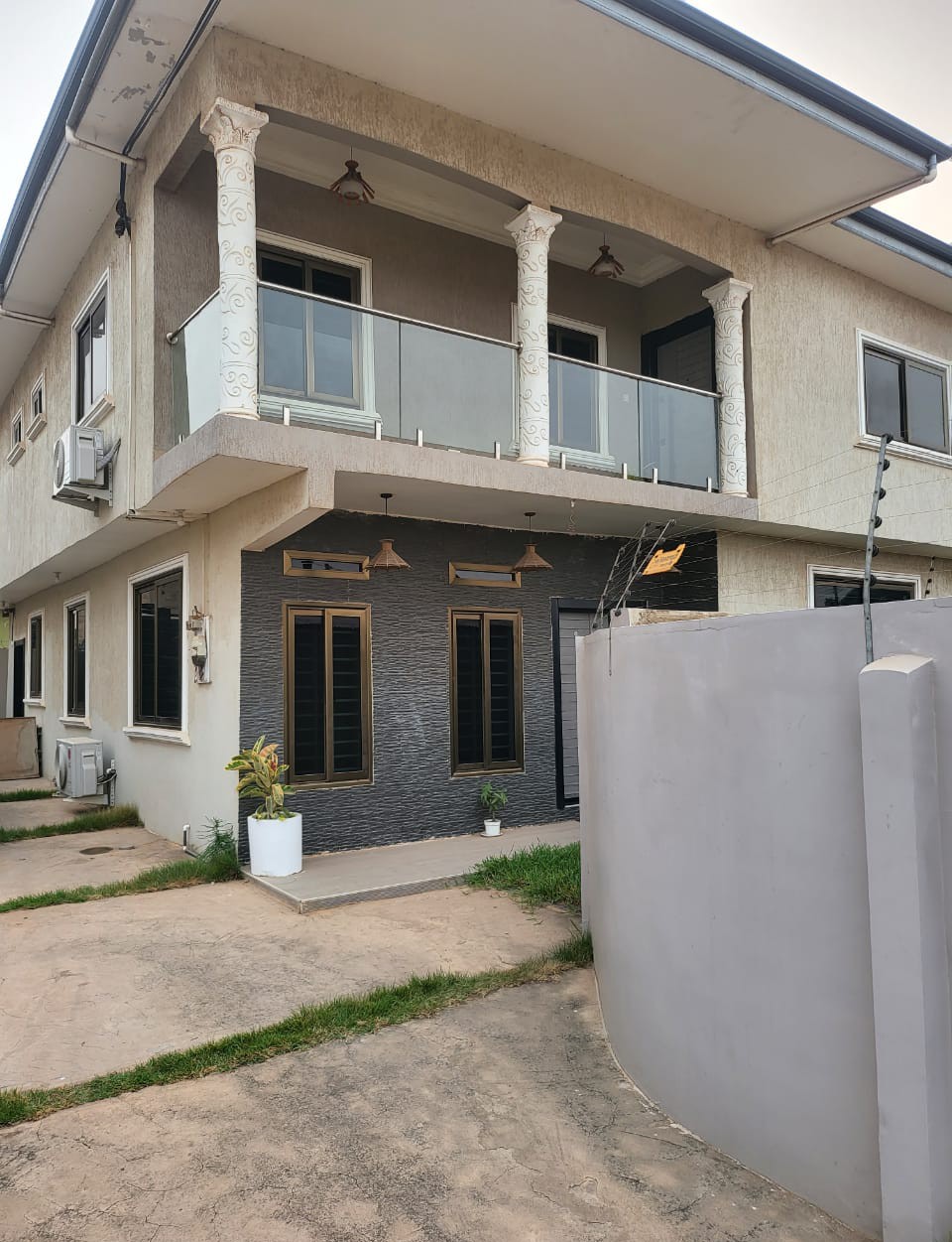 The apartments is under one building with 3 bedrooms upstairs with balcony and two bedrooms downstairs with their own separate entrances, the apartments comprises of ;